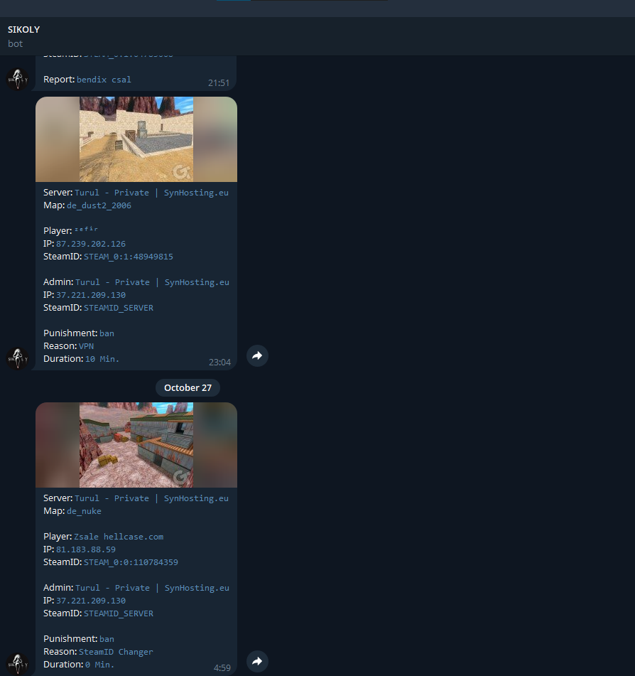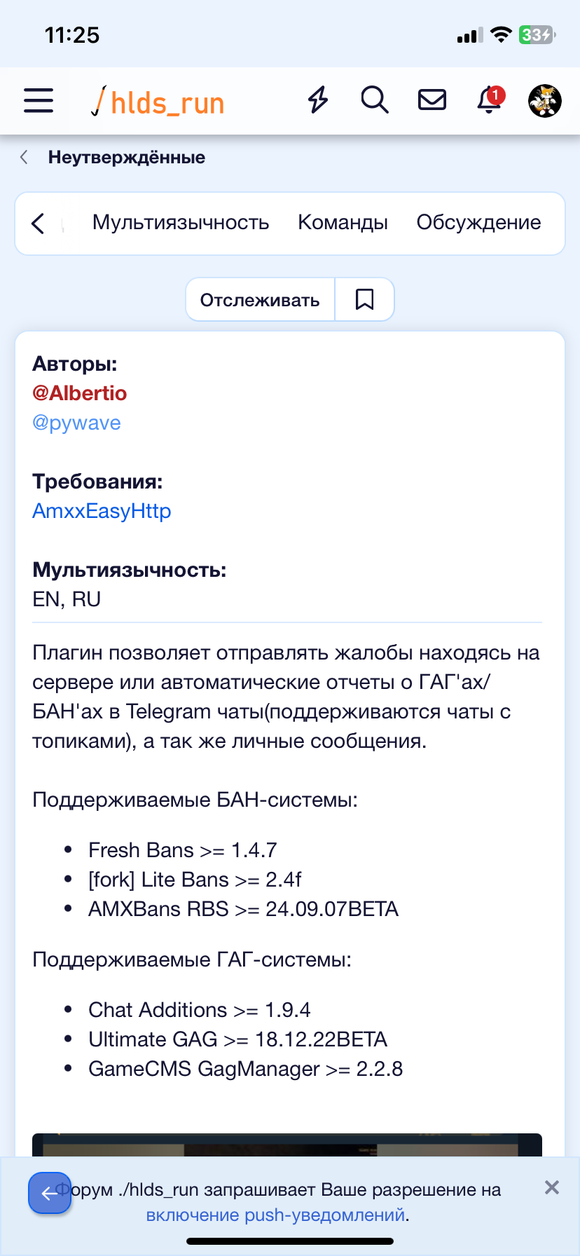 Telegram Reports Modular - Плагин позволяет отправлять сообщения о наказаниях и жалобы в Telegram